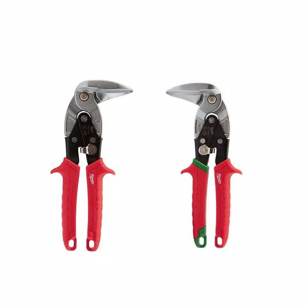 - Includes: (1) 48-22-4521 9 in. right-cut right angle aviation snips, (1) 48-22-4521 9 in. left-cut right angle aviation snips,