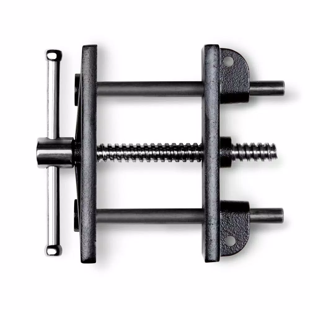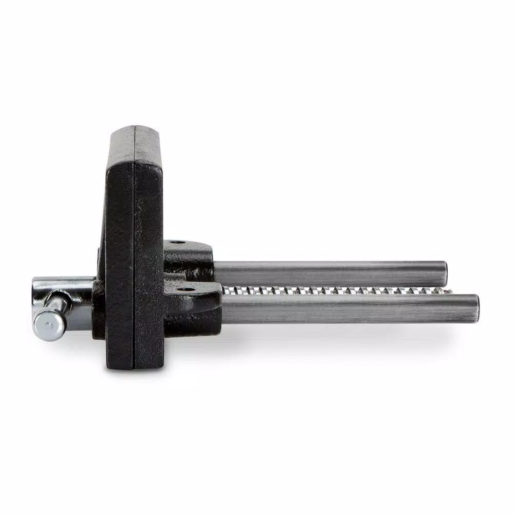 Mount the TEKTON 6-1/2 in. Woodworking Vise to the face of your bench and get a sure grip on your furniture, cabinetry and other woodworking and assembly projects. Add custom jaw pads made of hardwood, soft pine, plywood or other materials to prevent damage to fine surfaces. The vise is made from 30,000 PSI cast iron, so durability and dependability are built in. To maximize grip and prevent surface damage, the jaw travel is guided by twin steel rails to evenly distribute contact between the jaw and work piece. Installation options include positioning the vise flush with a bench top for quick and consistent alignment between work pieces. Turn the chrome-plated sliding T-bar handle and the jaw glides smoothly along the Acme-threaded main screw without binding or chattering, even as clamping pressure increases.
