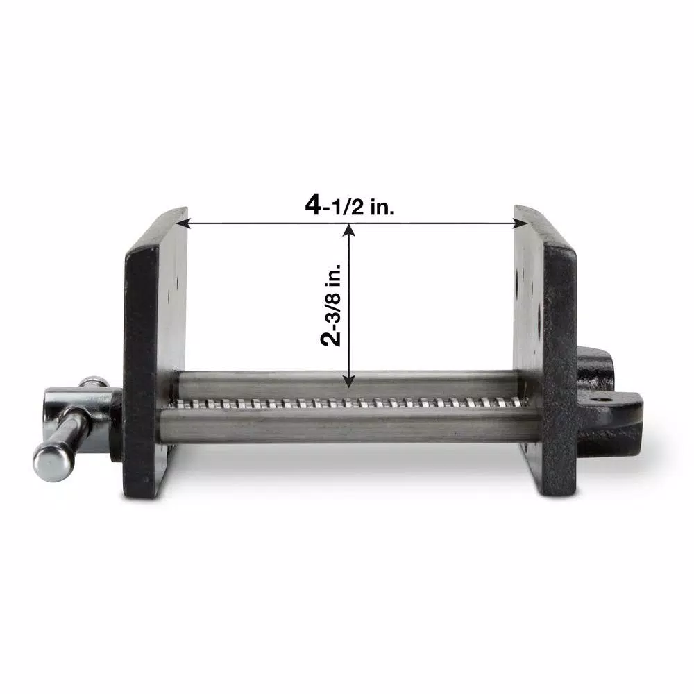 - Mounts to face of workbench to hold woodworking and assembly projects