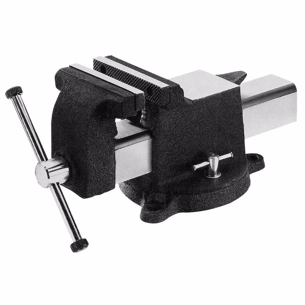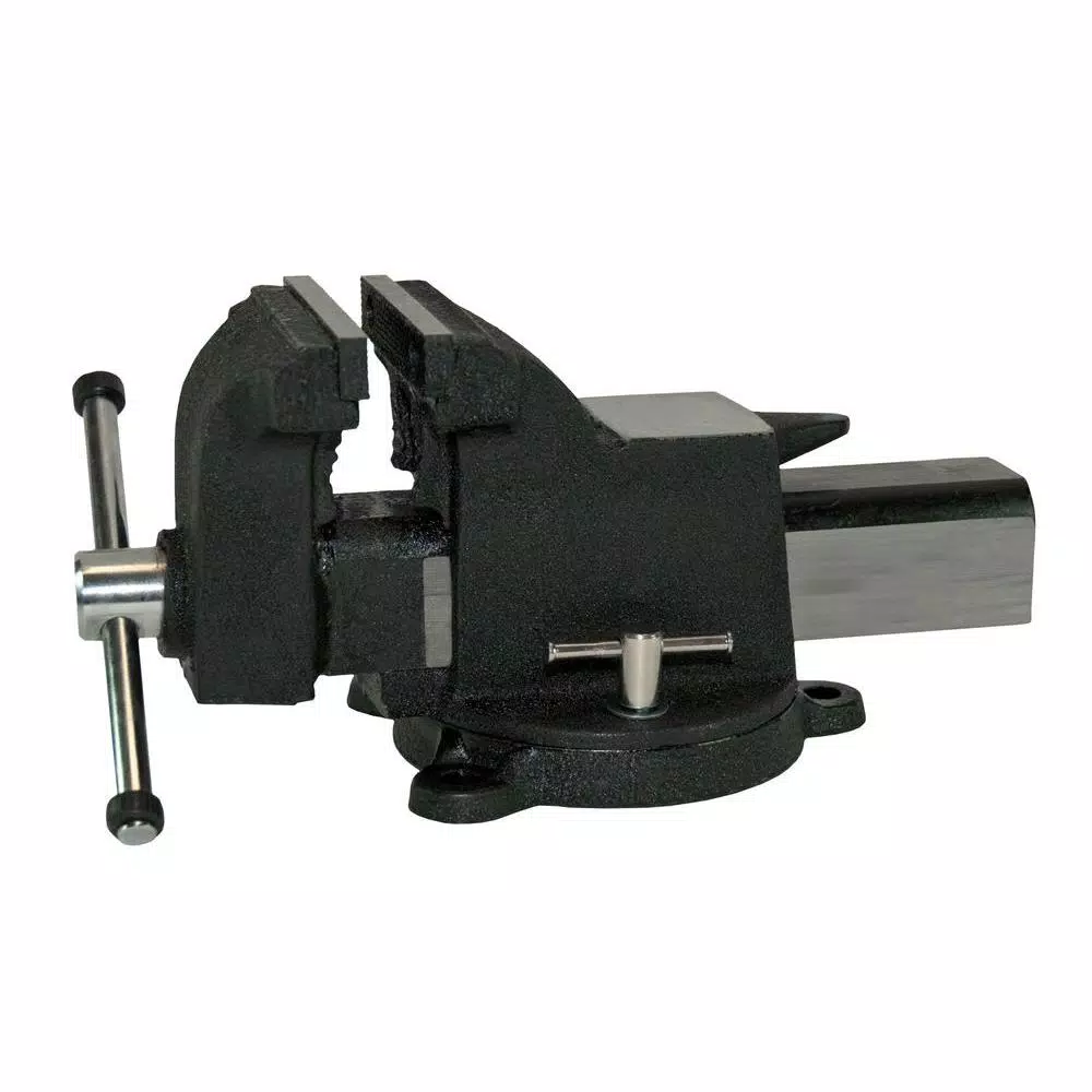 ALL Steel utility vises are light duty combination pipe and bench vises that are economically priced for various less demanding applications. The entire vise is constructed using structural cast steel. The bar covers the Acme threaded main screw. Each vise is equipped with replaceable hardened steel serrated jaws and built-in pipe jaws, interlocking swivel base with 360° motion equipped with 2 lockdowns, a large reinforced anvil and a no pinch main screw handle.