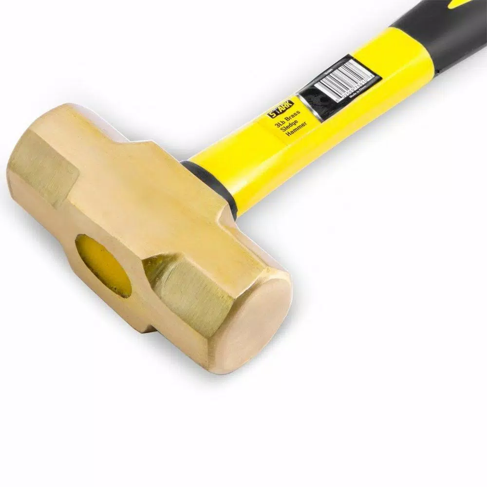 - 3 lbs. brass sledge hammer with fiberglass handle commonly used for breaking drywall or masonry walls for destruction work