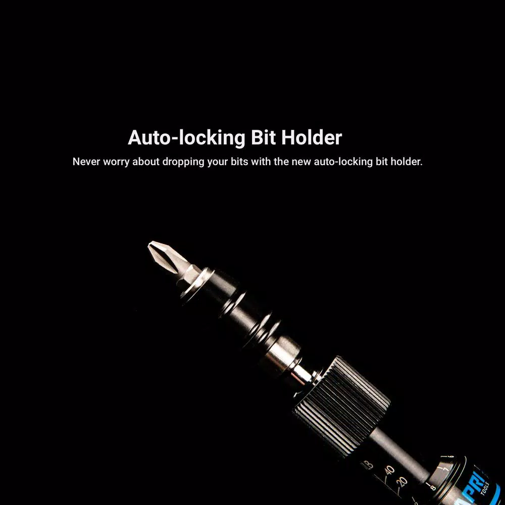 - Torque limiting feature causes screwdriver to slip after reaching desired torque, avoiding damage to the screw being driven
