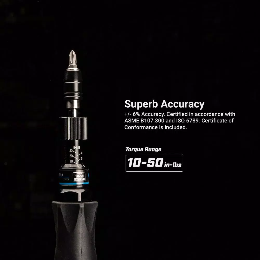 - Professional grade torque screwdriver with 10-50 in. lbs. torque range