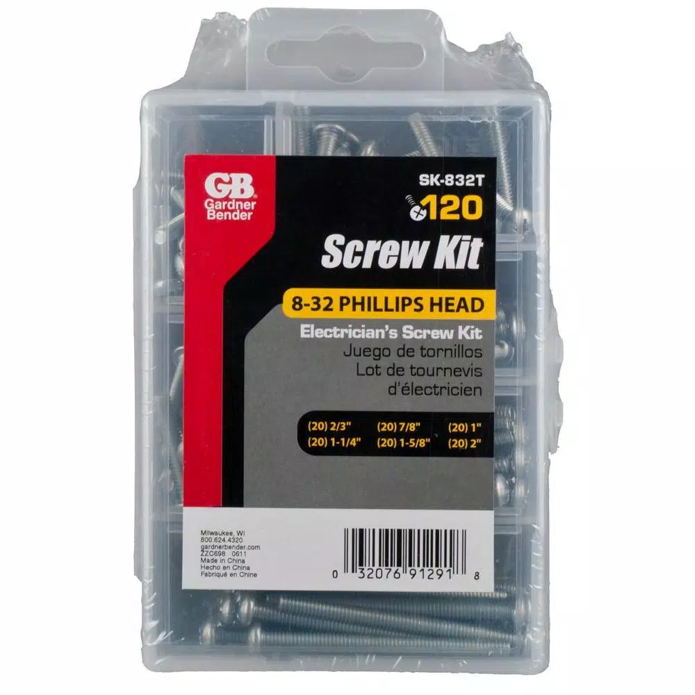 This handy screw kit contains an excellent assortment of the most commonly used electrical machine screws. The durable plastic case can be used and reused to organize and store small items and contains: 20 Phillips head screws in each of the following sizes: 2/3 in., 7/8 in., 1 in., 1-1/4 in., 1-5/8 in. and 2 in. This kit ensures you have the screws you need for switches, receptacles, outlets and almost any other electrical application.