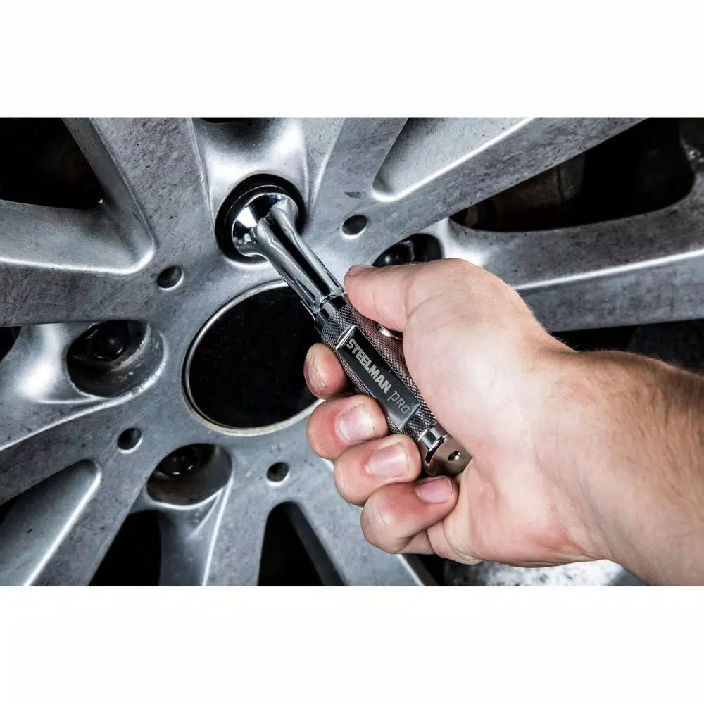 Every car aficionado will be able to appreciate the ingenuity of the Steelman PRO 78909 Magnetic Lug Handler. Specifically designed for hand tightening 21 mm sockets, this innovative handler is constructed of high-performance chrome-vanadium steel. It features a precisely machined body that produces a permanent magnet effect, which allows lug bolts to be securely held inside of the sockets while in use. The addition of a protective sleeve around the socket protects wheels from any scuff damage.