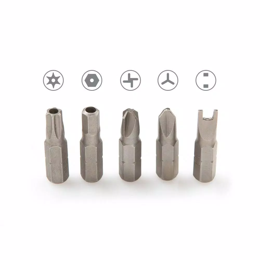 - 6-piece tamper-resistant metric hex bits: 2, 2.5, 3, 4, 5, 6 mm
