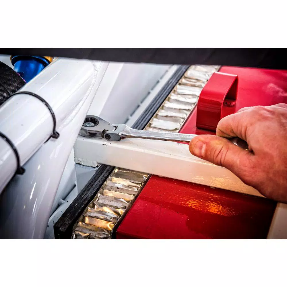 - Ratcheting box end needs as little as 5° to move fasteners versus 30° for standard wrenches