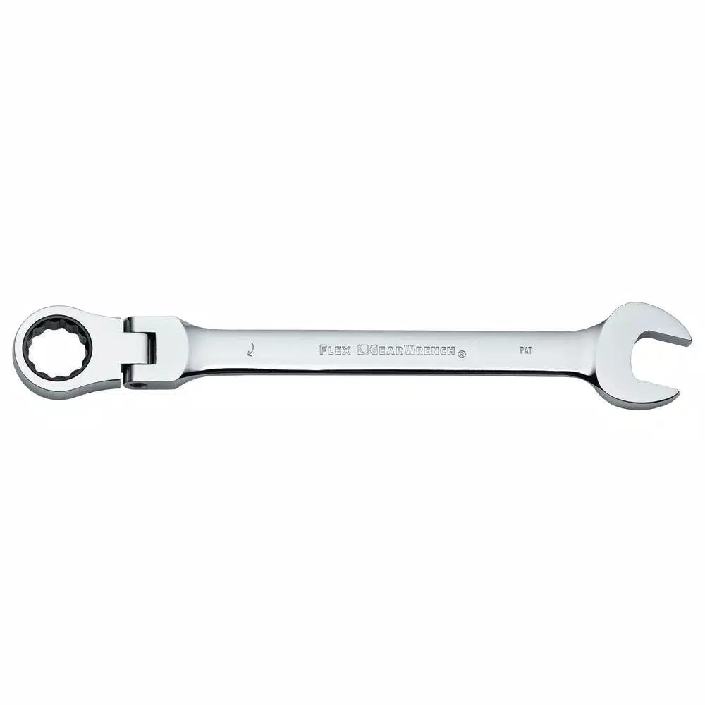 The GearWrench 21mm Flex-Head Combination Ratcheting Wrench features a full chrome polish finish for durability and corrosion resistance. Ratcheting box end increases productivity while reducing hand fatigue. The box end utilizes Surface Drive technology which provides off-corner loading for better grip and reduced fastener rounding.