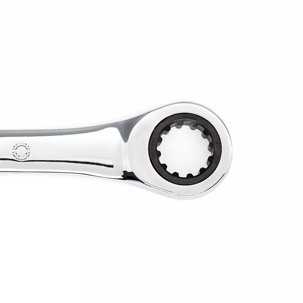 Husky’s universal ratcheting combination wrenches feature a 72-tooth ratcheting box end that needs only 5° to engage fasteners. Each wrench is manufactured from chrome-vanadium steel and heat treated for added strength and wear protection; providing durability for a lifetime of hard use. Their polished chrome finish resist rust and corrosion and easily wipes clean of oil and dirt. Both the open and box end features chamfered lead ins for quick and easy placement onto fasteners every time.
