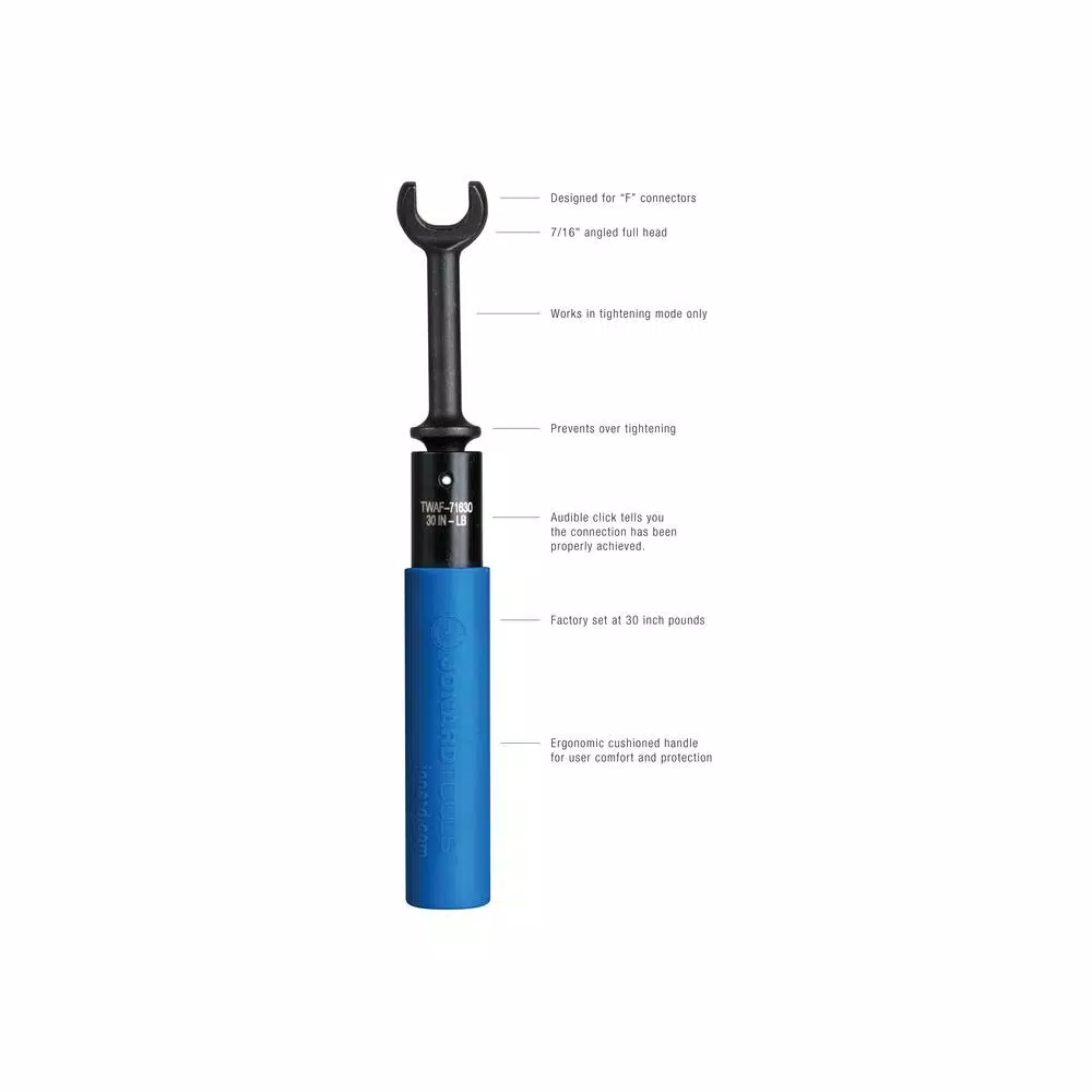 - Versatile use: Calibrated to 30 in-lb (3.39 N-m) to consistently meet most manufacturers’ recommended torque requirements for their F connectors