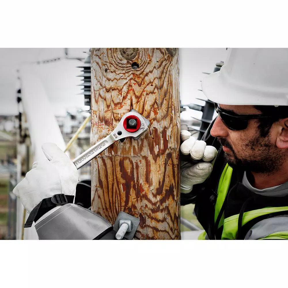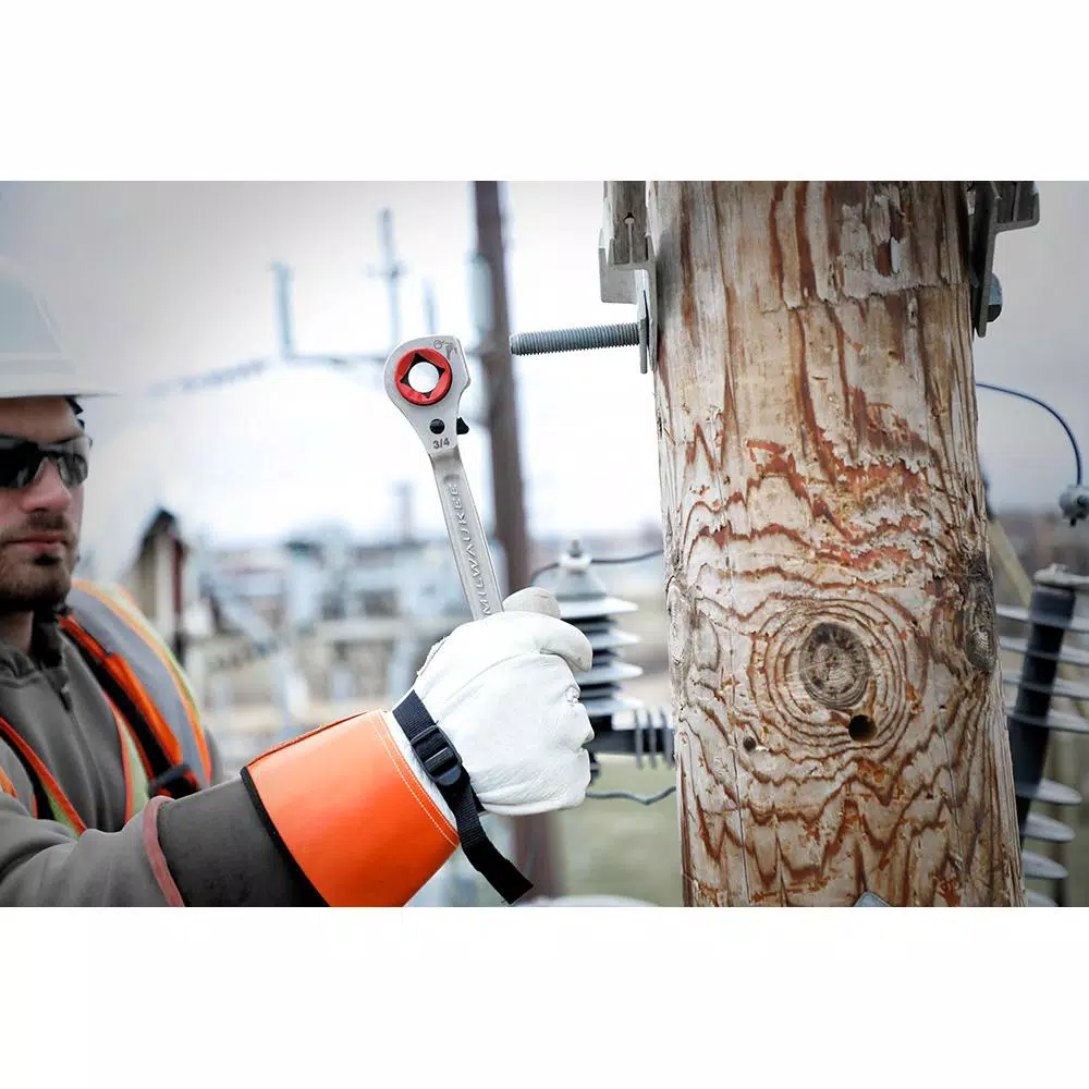 The Milwaukee Lineman’s 5-in-1 Ratcheting Wrench features the most durable ratchet. The ratcheting wrench has a built-in hammer providing users with a dedicated surface for hammering. It also has large directional switches that users can easily press while wearing gloves. It has a durable forged steel construction providing users with longer tool life. The high leverage wrench fits 3/4 in., 1 in. and 1-1/8 in. square hardware and 9/16 in. and 3/4 in. standard hardware.