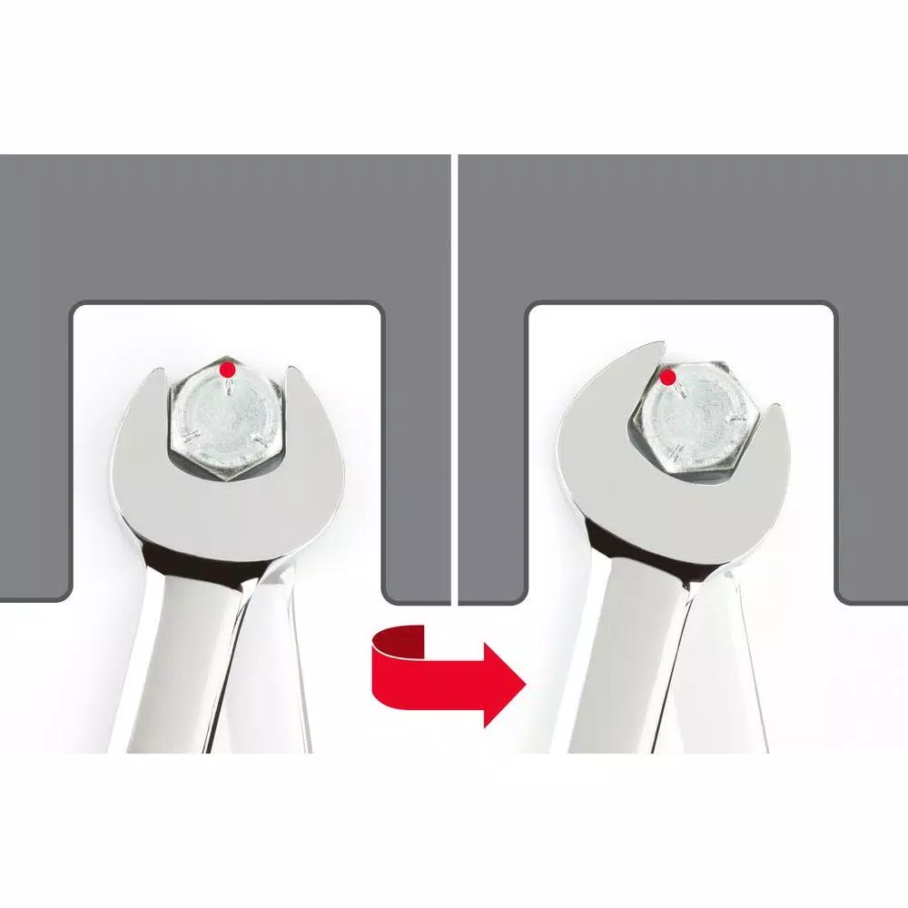 - Open end is angled 15-degrees so the wrench can be flipped over to engage fasteners twice as often in tight spaces